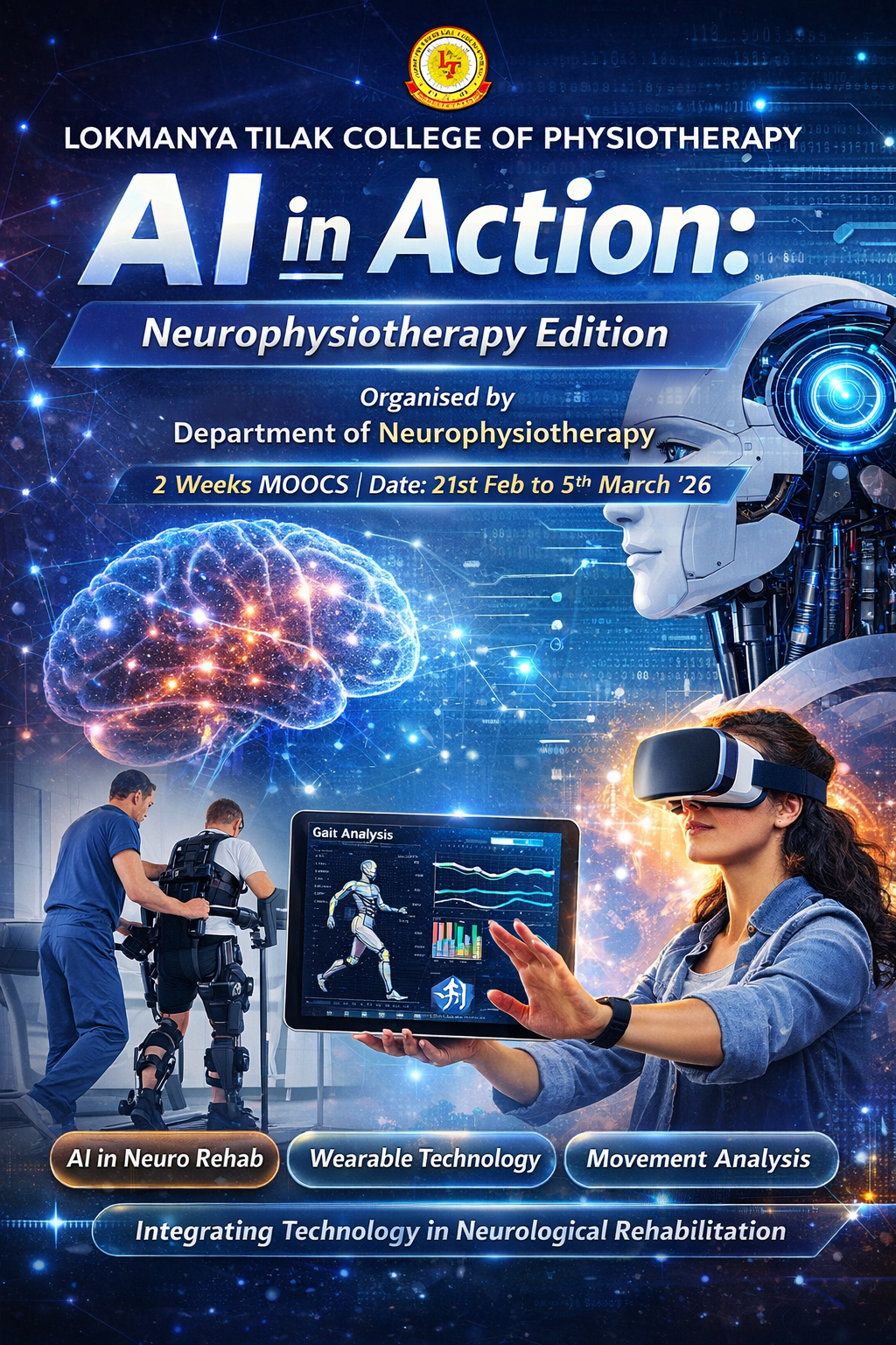 AI in Action: Neurophysiotherapy Edition is a short-term, skill-based course designed to introduce physiotherapy students and clinicians to the emerging role of Artificial Intelligence in neurological rehabilitation. The course integrates core neurophysiotherapy concepts with modern digital technologies to enhance assessment accuracy, clinical reasoning, and rehabilitation planning.